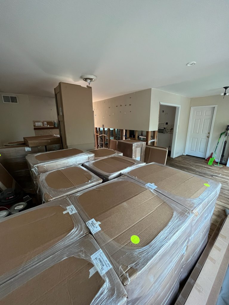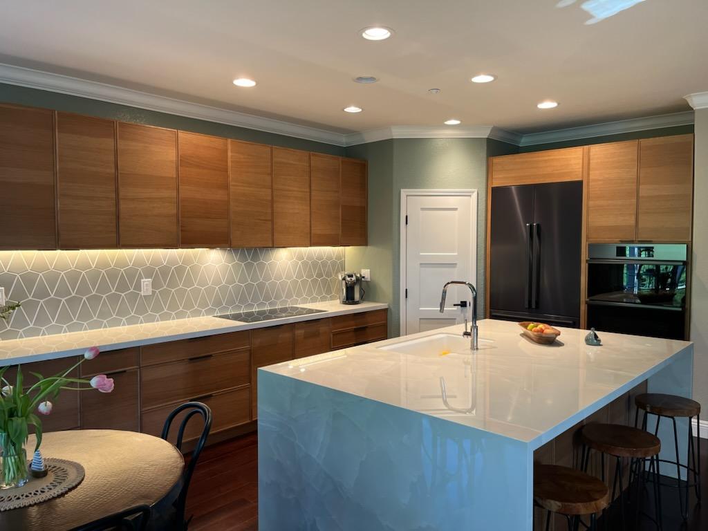 This was a like-for-like kitchen update with new cabinets, appliances, electrical, countertops, sink, and backsplash.