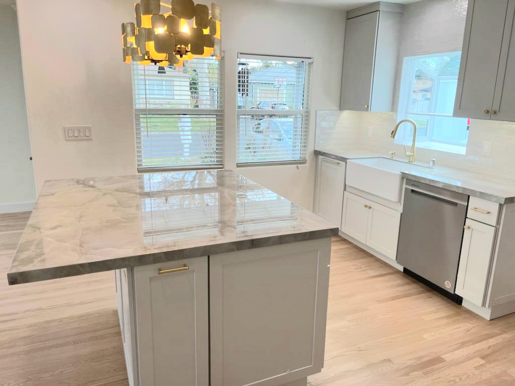 In this remodel we removed the wall separating the kitchen from the rest of the house and updated the entire space.
